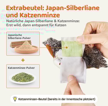 Inklusive Geheimwaffe: Im Inneren befindet sich ein Beutel mit frischer Katzenminze, die selbst die faulste Couch-Potato zum Spielen motiviert.